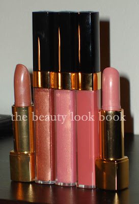 Left to right: Curious Rouge Allure (63), Unity Glossimer (41), Waterlily Glossimer (112), Bel Air Glossimer (147), Naive Rouge Allure (25)
