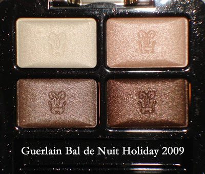 Guerlain has a lovely collection for this holiday and I picked up the Bal de Nuit quad from Neiman Marcus. I only have 1 other quad from their Fall Collection since most of their eyeshadows have so-so pigment. This one seems to have decent pigmentation, but you will be suprised to hear that the colors didn’t wow me this time.