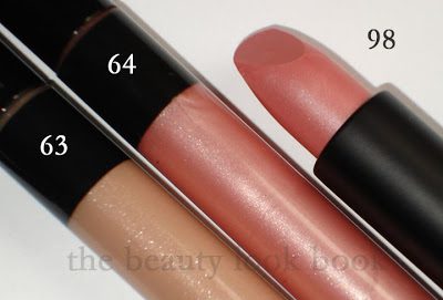* 3 new Lipshimmers: #62 is a pale buttermilk-cream color, #63 is a sparkley beige, #64 is a shimmery pale pink with a hint of peach