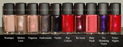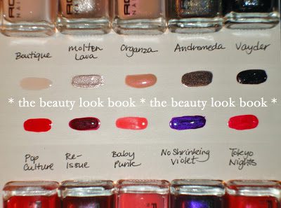 My descriptions of the colors: (note that Molten Lava, Pop Culture & No Shrinking Violet were part of a 3-piece holiday set)