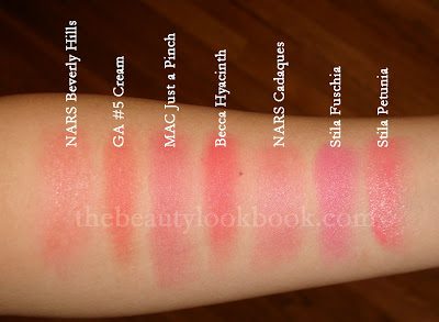 Here are some swatches compared to a few other cream products from Armani, MAC, Becca and Stila (swatched on a bare arm).