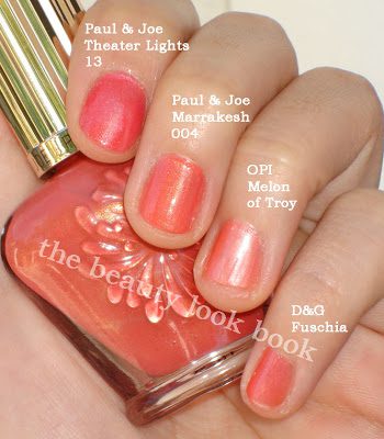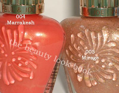 Again, the packaging is the best part of this collection. I’ve only tried the sheer pink lipstick and it has a sheer glossy finish with noticeable shimmer (not frost though). I plan on trying out the bronzey one in the next few days. I absolutely love the Mirage 005 Nail Polish. It’s similar to P&J Gilded 27 except the new Mirage 005 is more beigey. The coral Marrakesh 004 Nail Polish is lovely too, but I’m not used to coral-orangey reds. Perhaps it will look better on the toes.