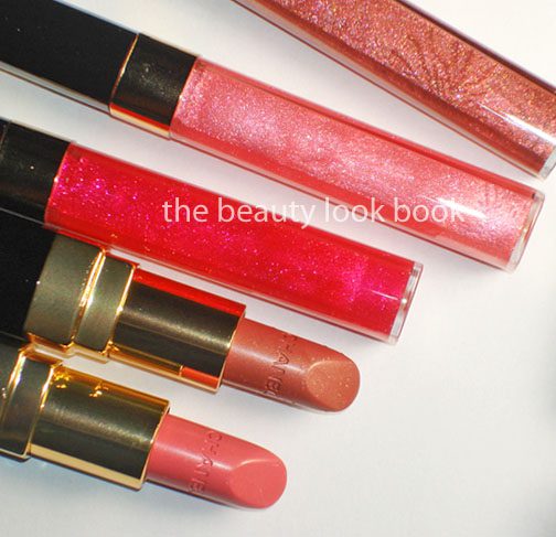 Top to bottom: Glossimers Pleasing 227, Charming 237, Pink Pulsion 247, Rouge Cocos Patchouli 107, Magnolia 117
