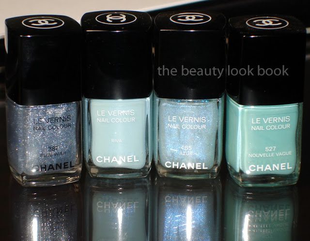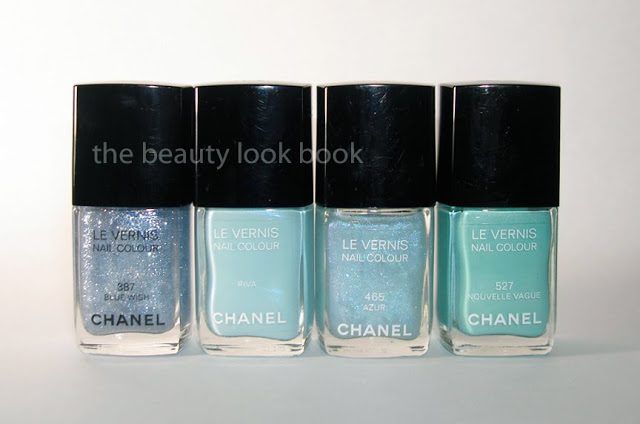 I don’t have very many blues cosmetics-wise, but here are is my small collection. All Chanel. Left to right: Blue Wish (from the Tokyo Happening Collection), Riva, Azur (from Spring 2008), Nouvelle Vague (from Summer 2010)