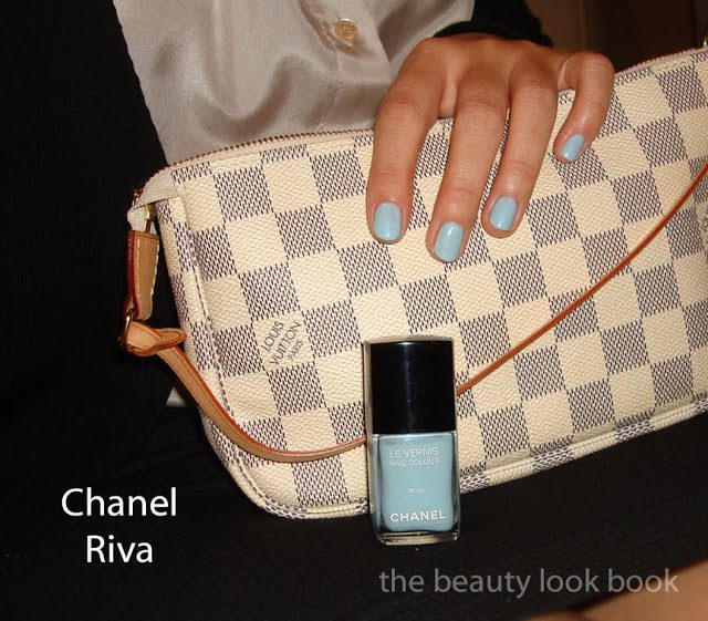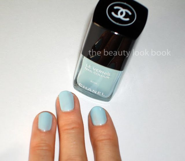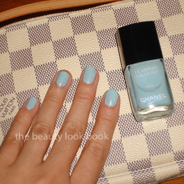 It’s a creamy baby blue with the slightest hint of shimmer. The finish is much like Jade, Jade Rose and Paradoxal in the sense that you see shimmer in the bottle but it applies more like a cream. Unfortunately, the wonderful high quality Chanel finish seems to be a bit lacking in the new Riva. You can get a beautiful smooth finish with 3 coats, but it definitely takes more care and steadiness to get a non-streaky finish. As my dear friend L.R. (a Chanel fanatic like me) says, “One coat is sad, two is much better, three fits the bill.” I couldn’t have described it better.