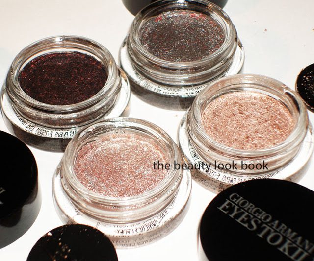 I played with these over the past few days layering them on top of each other (two shades at the most, first the lighter shade then darker shade on top). Overall I’m extremely impressed with the lasting power. In terms of the colors, I prefer the darker ones for the eyes. The lighter shades are super metallic and frosty – a bit too much for my taste. I did mix a non-shimmer flesh shade (Bobbi Brown Shore) with a paler Armani ETK (#8) by mixing them together on the fingers which helped to minimize the frost. They are lovely colors and office appropriate – just not quite as finely milled as Chanel’s Ombrees de Perles from Spring {love and reviewed here}.