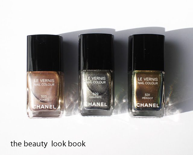 Chanel Fall 2011 has broken my blog break and has also eaten into my savings for a Chanel mini-flap. I am still highly ecstatic. My first feature on the Fall Collection will be on new Le Vernis shades ($25 each). The theme for nails is metallic where light plays a key role in the final result of what you see on the nails. The colors are slightly translucent in texture so you can build intensity with two or more coats. Each shade has a slightly different finish and quality making each color unique.