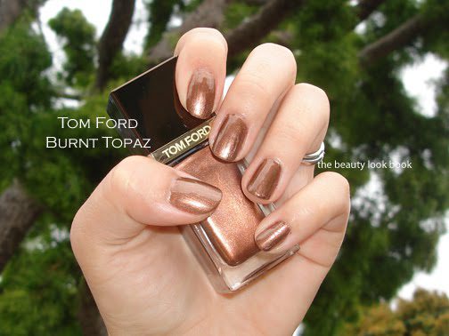 Tom Ford’s Spring 2012 Collection includes four new metallic nail polishes and I purchased three from Saks.com in Burnt Topaz, Gold Haze and Silver Smoke ($30 each). Tom Ford initially launched sixteen non-shimmer cream shades of nail polish when the complete beauty line was rolled out to select Neiman Marcus and Saks stores. I purchased two shades sight unseen online (African Violet and Pink Crush) and was less than impressed with the color and formula for the price. I did not feel compelled to review them. The formula was difficult to apply smoothly and I felt the colors were unoriginal. Upon professional application I did find the formula extremely long lasting without chips or peeling, but still the formula wasn’t so great. Several months later I was able to see the entire line in store at Neiman Marcus but the poor lighting conditions of the displays combined with the messy leaking lids on the testers prevented me from looking further.
