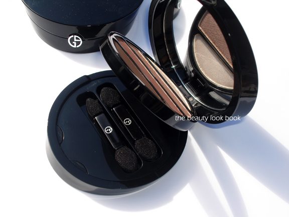 Both shades I picked turned out to be fairly similar. They are both neutrals with two shimmery light shades and two darker matte shades. Those who have been long time Armani fans will be pleased to learn that the latest eyeshadow formulation is a significant improvement in pigment and texture over the past quads. Over the years it seems Armani has reformulated almost all their color products. I noticed many of the Maestro singles are no longer for sale – I asked the Armani rep if they were being reformulated too and at this time he wasn’t sure but said it wouldn’t surprise him if they did.