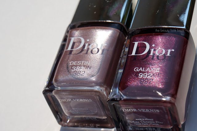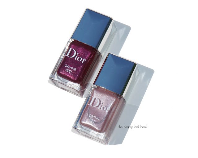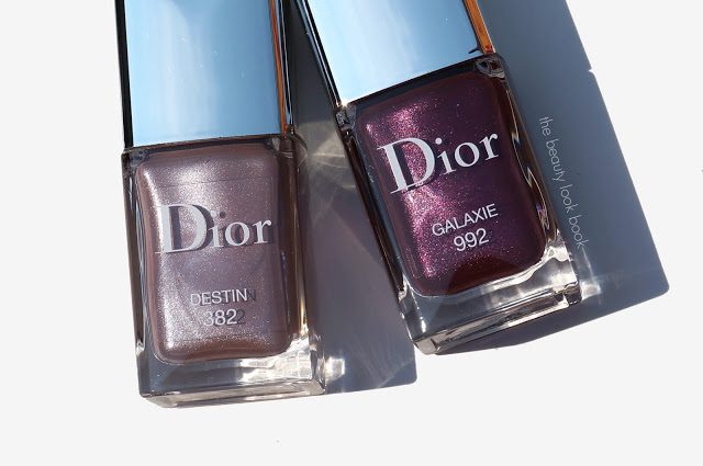 Dior Mystic Metallics brings us three new nail polishes, one in a magnetic-wave formula, two in the regular Dior formula. I purchased the two regular Dior Vernis shades in Destin 382 and Galaxie 992 ($24 each for 10 ml/0.33 fl oz, made in France). Both are stunning shades for fall. Destin 382 is a beautiful neutral mauve-grey shimmer with slight pinkish tones. Galaxie 992 is a beautiful plum metallic. Both are very smooth in finish with full coverage. Each shade has the perfect amount of shimmer – enough to be visible on the nail, but not too frosted or metallic. You may find similar colors in your collection however each shade is just so stunning – they are like updated classics, I think they are definitely must-haves for fall.