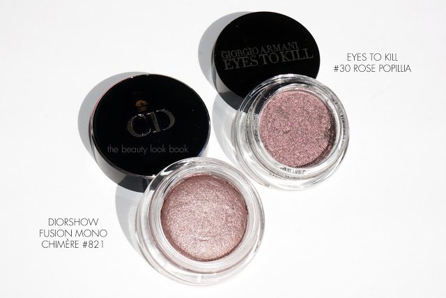 I’m loving shimmery pinks for eyes right now. Two new discoveries include these interesting hybrid gel-creams, in particular Diorshow Fusion Mono in Chimère #821 ($30 for 6.5g) and Armani Eyes to Kill in Rose Popillia #30 ($33 for 4g). There are pinks that can be impossible for me to pull off on my olive skintone, but these two have an interesting mix of sparkle and shimmer that they don’t look like traditional pinks on the eyes.