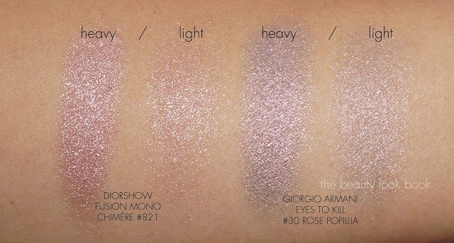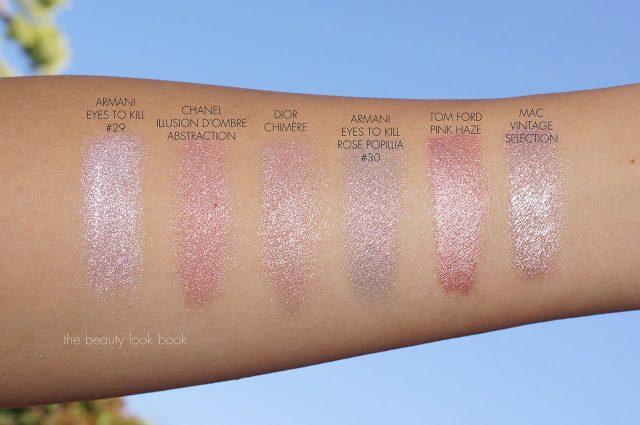 Comparisons to other pinks including Armani Eyes to Kill #29 (swatched here), Chanel Abstraction, Tom Ford Pink Haze (reviewed here), MAC Vintage Selection Paint Pot.