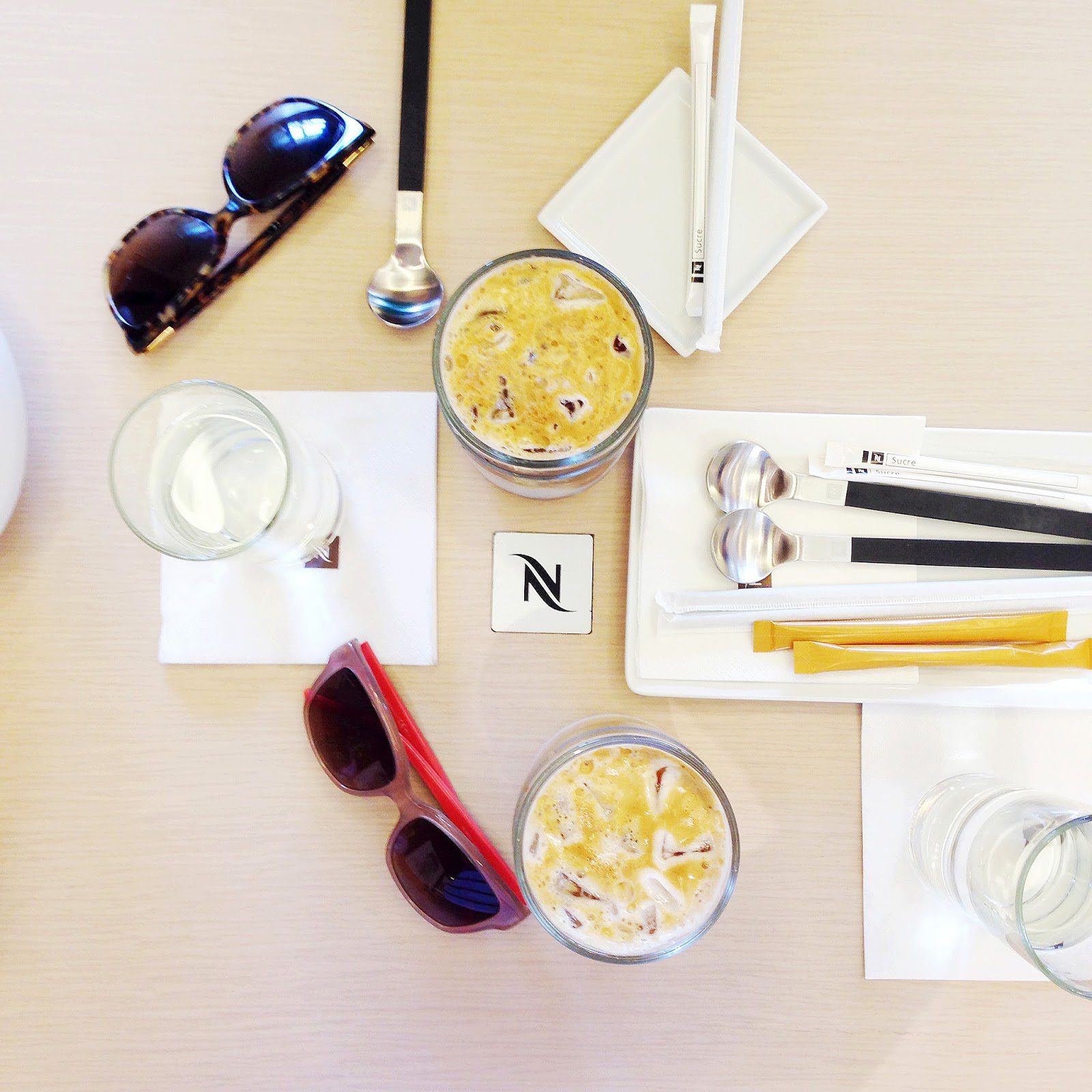 Left: Nespresso San Francisco (hubby) , Right: Nespresso Beverly Hills (me), photos taken at the same time while in different cities (not planned)