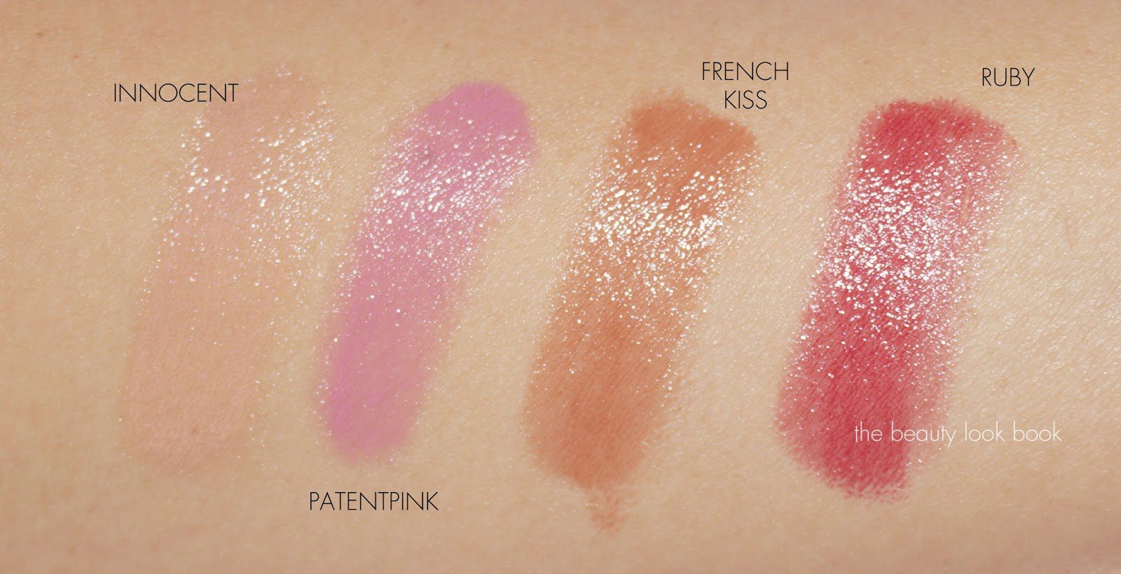 Swatches show a slightly transparent texture and glossy shine: