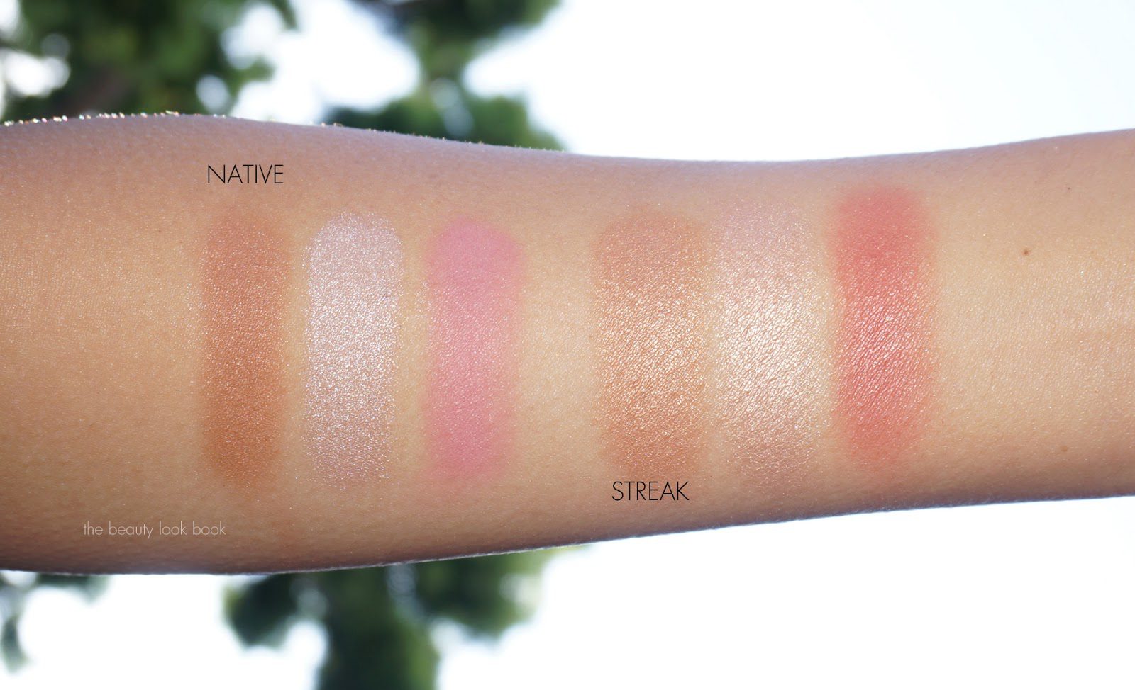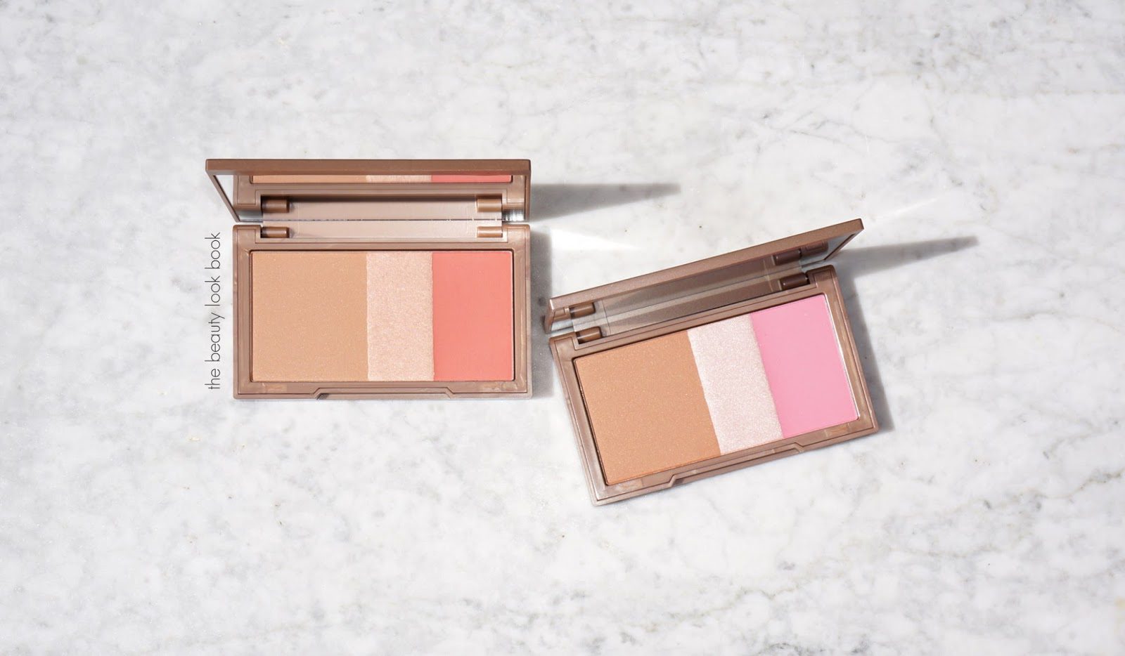 Native is a pink option with a medium-dark bronzer with a soft shimmer, a opal pinkish champagne highlighter and a matte pink blush