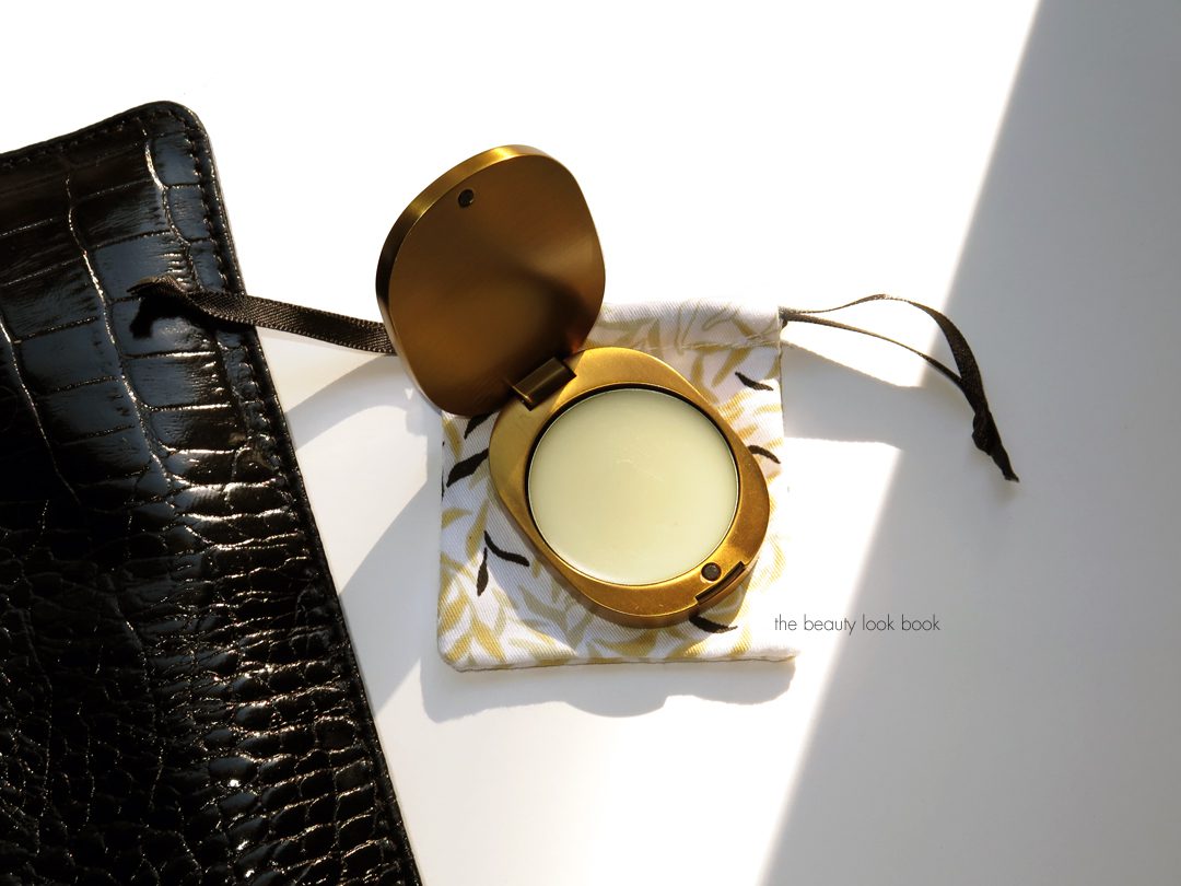 The new 34 Essences Insensées has the same size and design of the other solid perfumes but comes in a lovely drawstring pouch and gold metallic case.