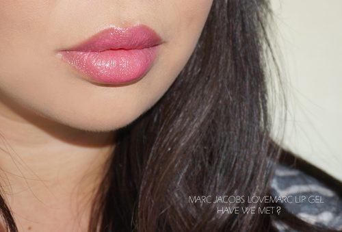 I have two Marc Jacobs Beauty lip products to share today that I’ve been obsessed with for a few weeks now. The Lovemarc Lip Gel in Have We Met? ($30 for 3.6 g / 0.12 oz) is a medium rose pink with a bit of gold shimmer. The formula of the Lovemarc Lip Gel is really nice and smooth. It’s become a favorite lipstick formula of mine, I think they are highly under-rated. The lipsticks are a unique gel formula with a slightly glossy finish. The shades I’ve tested adhere well to my lips and give medium to full coverage. (Other reviews on blog on Role Play, Serevine and Cabaret.) The Lip Gels have a slight vanilla scent but it is very soft and subdued making it wearable for me even though I have a super sensitive nose.