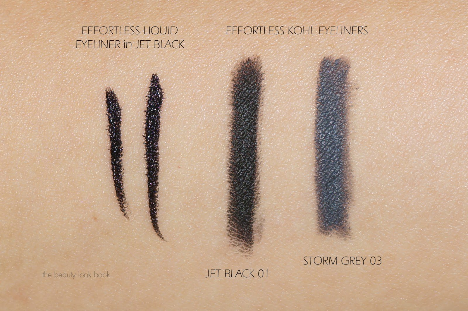 Effortless Kohl Eyeliners ($29 each) come in four colors, Jet Black No. 1, Chestnut Brown No. 2, Storm Grey No. 3 and Pale Grape No. 4. Burberry sent me Jet Black and Storm Grey for review and I’ve been extremely pleased. I’ve been a fan of the Chanel Stylo Yeux Waterproof liners, but many have commented that the quality isn’t consistent among all colors. I do think it’s hit and miss sometimes based on testers I’ve tried at the counter to the ones I have at home. Some are hard and tug at the eyes. If you experienced this but want a twist-up long-lasting pencil that comes with a sharpener at the end, the Burberry Effortless Kohl Eyeliners are the solution for you. These are rich pigmented Kohl Liners. The Jet Black is one of the deepest blacks I’ve tried (the Hourglass 1.5 mm Mechanical Eyeliner in Obsidian is one of the deepest I’ve tried and the Burberry is slightly deeper). Storm Grey is one of the richest greys I’ve swatched before, it’s a deep color but not so dark it looks black. I don’t think either of these are waterproof, but both of these have really good lasting power. You do need to let these sit for a minute to completely set, but once they do set, I found they did not budge.