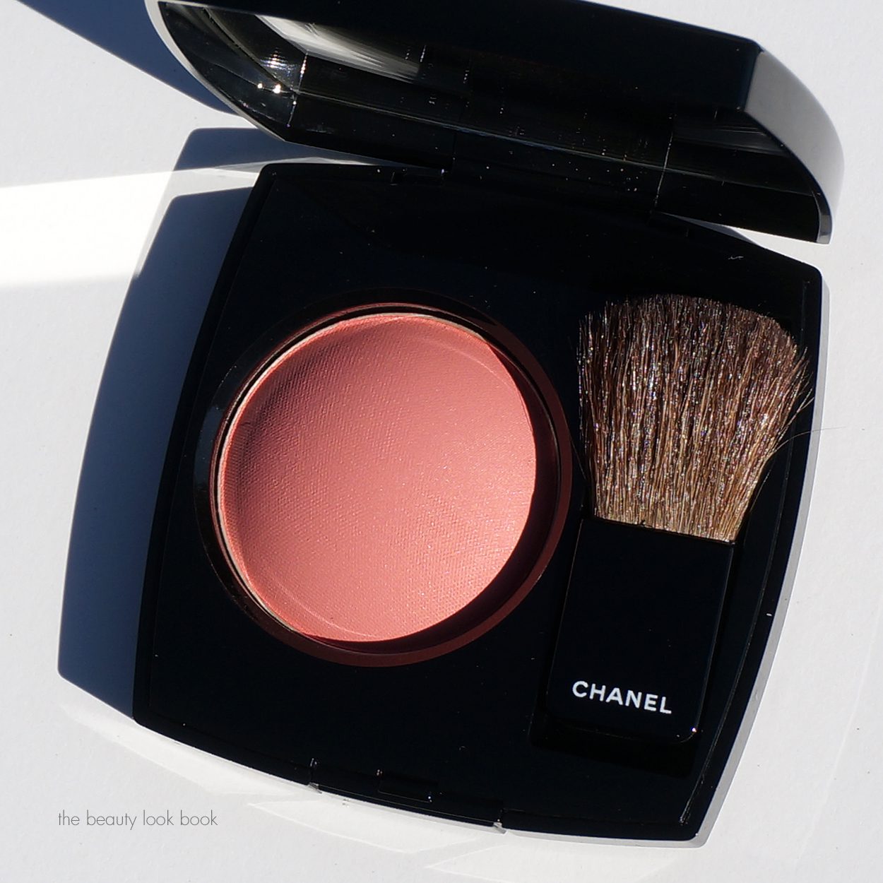 The Blush Camélia Rosé has two shades in one compact. There is a soft light pink and a medium rose intertwined in a stunning camellia rose pattern. The overall tone is cool-toned and there is a slight hint of silver sparkle in the powder. On my medium olive skin this is semi-sheer but has a glowy finish. It does show up on my Chanel Beige 30 skin but it is very subtle. My first impression when I saw this was to think “this is so tiny!” – I do wish Chanel had skipped the brush on this one and made the powder larger like the Beiges De Chanel or seasonal highlighters. Still, it is remarkably beautiful in the compact and on the skin. If you need something more dramatic or visible but still natural and glowy I would recommend Hourglass Mood Exposure (reviewed here and here).