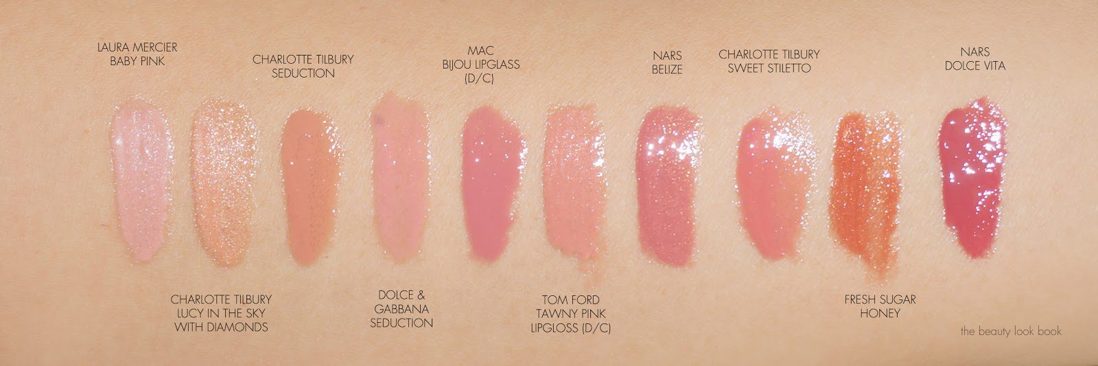The Lip Lustres Lip Lacquers ($22 each) range from creams to sheers to shimmers to sparkles. Out of all the neutrals, I don’t own Bardot Beige or Portobello Girl, but here are the ones I do own. The coverage is sheer to medium on these. I find them pigmented enough to wear alone, but for the shimmers I think they work best layered over other lipsticks to add dimension and shine. They are a bit sticky but not tacky. I really love these glosses.