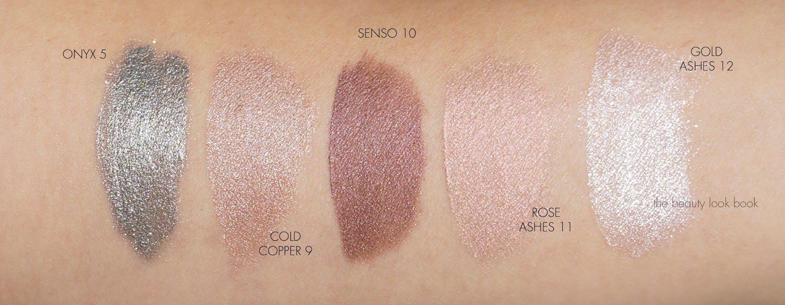 Onyx and Gold Ashes are extremely sparkly, but not quite as frosted or as pigmented as Armani Eyes to Kill shadows and not as glitzy as some of the Chanel Illusion D’Ombres. I’ve tried Gold Ashes all over the lids and it blends out really nicely for an even wash of sparkle. The other shades Cold Copper, Sense and Rose Ashes have a more finely milled shimmer. In terms of lasting power, I found these dried down to a satiny finish on the eyes after they set and lasted all day without budging. You can layer a powder shadow on top of these but if you do, I recommend working quickly with your shadows – these tend to set and dry quickly, although it’s not immediate which allows you to blend and layer, dry time is on the fast side (at least for me).