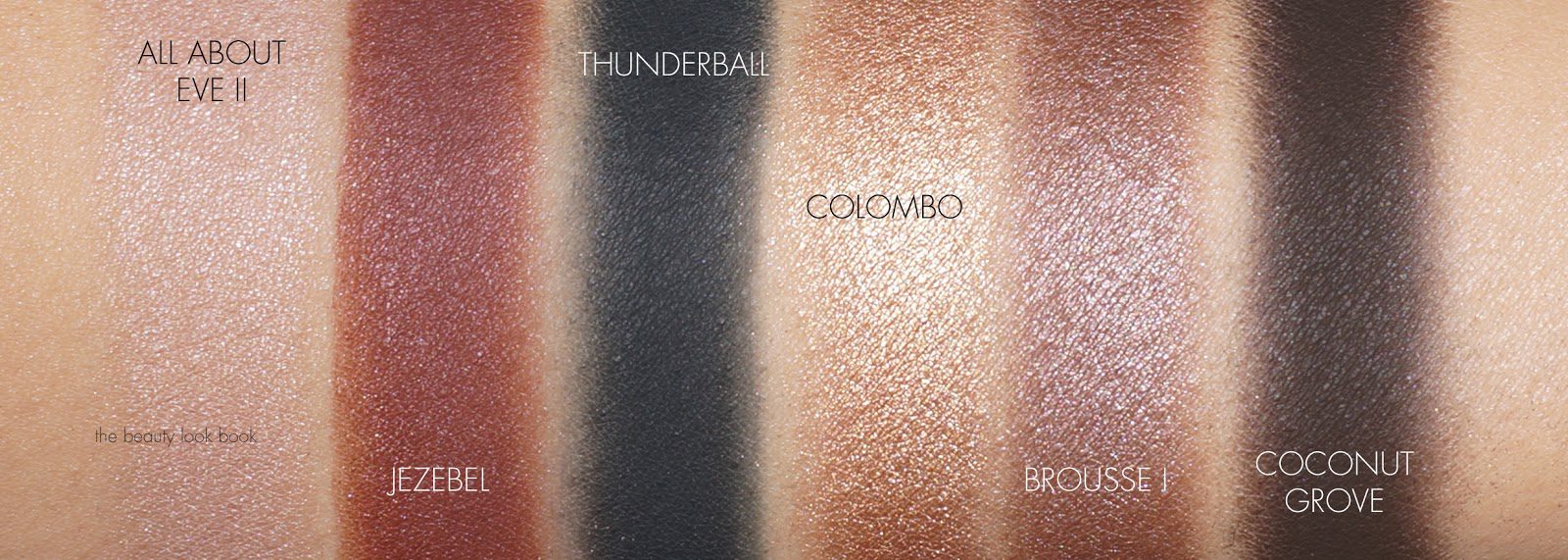 Here are the shades swatched with a heavy hand. If you’re familiar with NARS Eyeshadows you are well aware that they have a smooth texture with medium pigment that is easy to build. All the shades here perform just like the individuals. They glide on the eyes nicely and layer well with each other. There is only one shade I’ve found requires extra work. In my experience with Thunderball (the single), I’ve found it works best when packed on the eyes with a detail brush as a liner. If you apply with a regular eyeshadow brush all over the lids, you may find it looks uneven and chalky. I found performance to be the same with this palette.