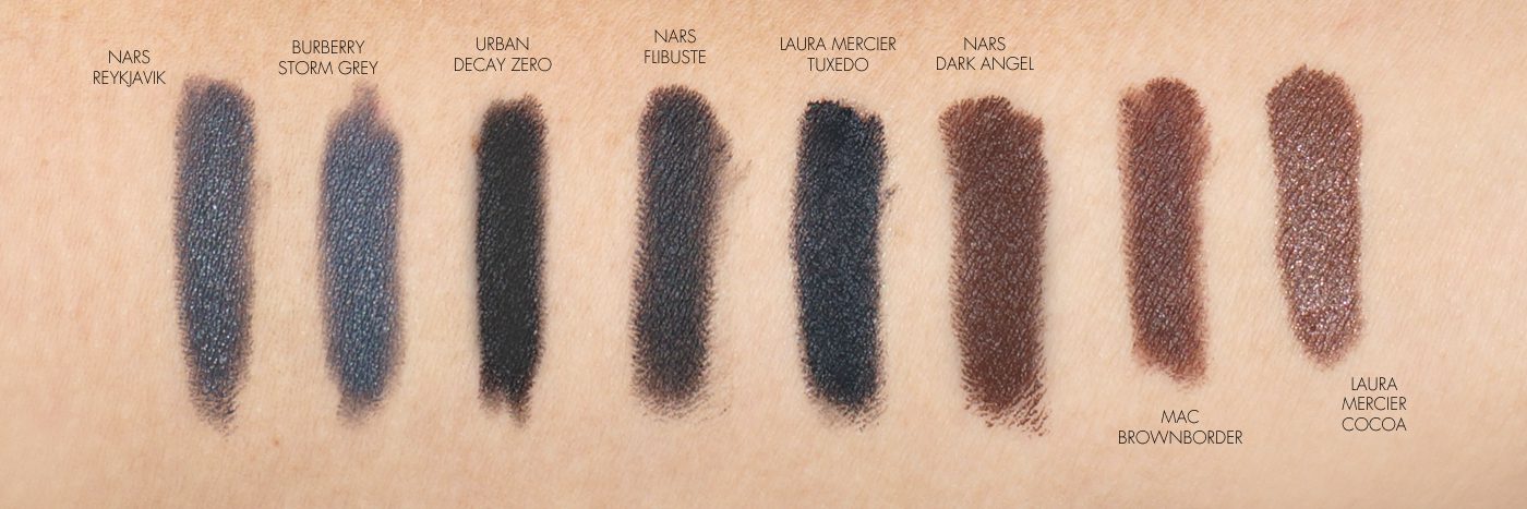 Here are a few swatched comparisons. I think the NARS Reykjavik grey is a phenomenal grey color. It’s my favorite out of the ones I’ve tested because it’s an intense grey without being too light or dark.