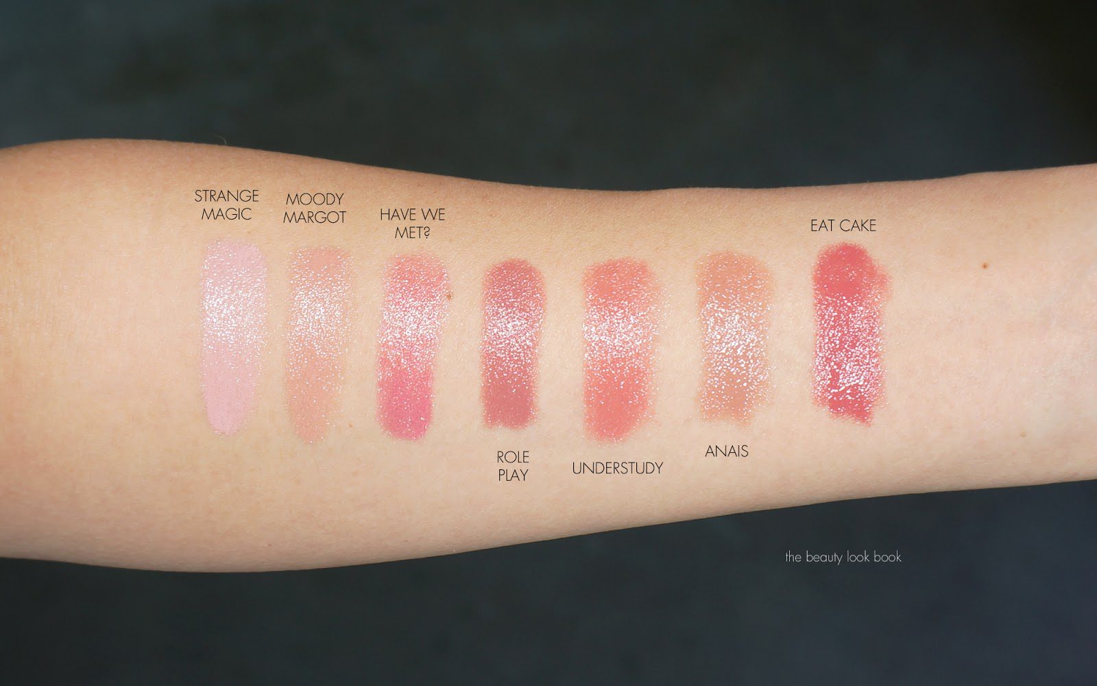 Above L to R: Sheer Lip Gels in Strange Magic, Moody Margot, Have We Met?, Role Play, Understudy, Anais, Eat Cake, (P)outliners in Prim(rose), Honey(bun), Nude(ist)