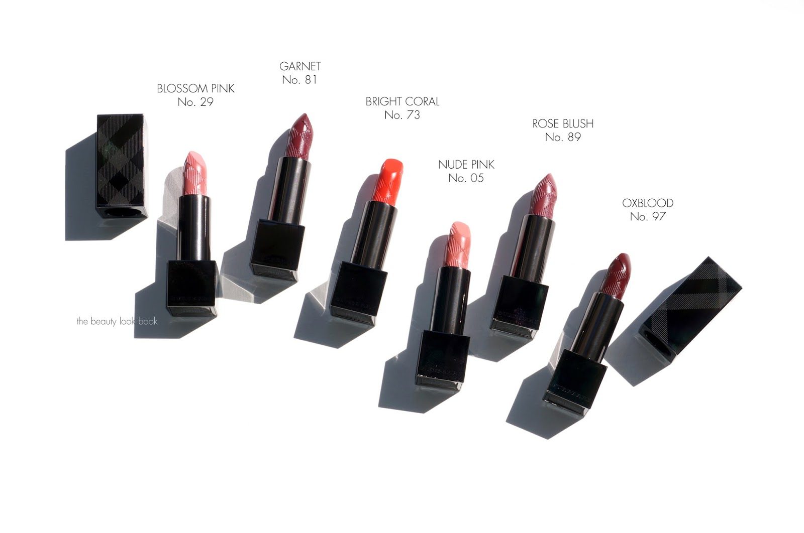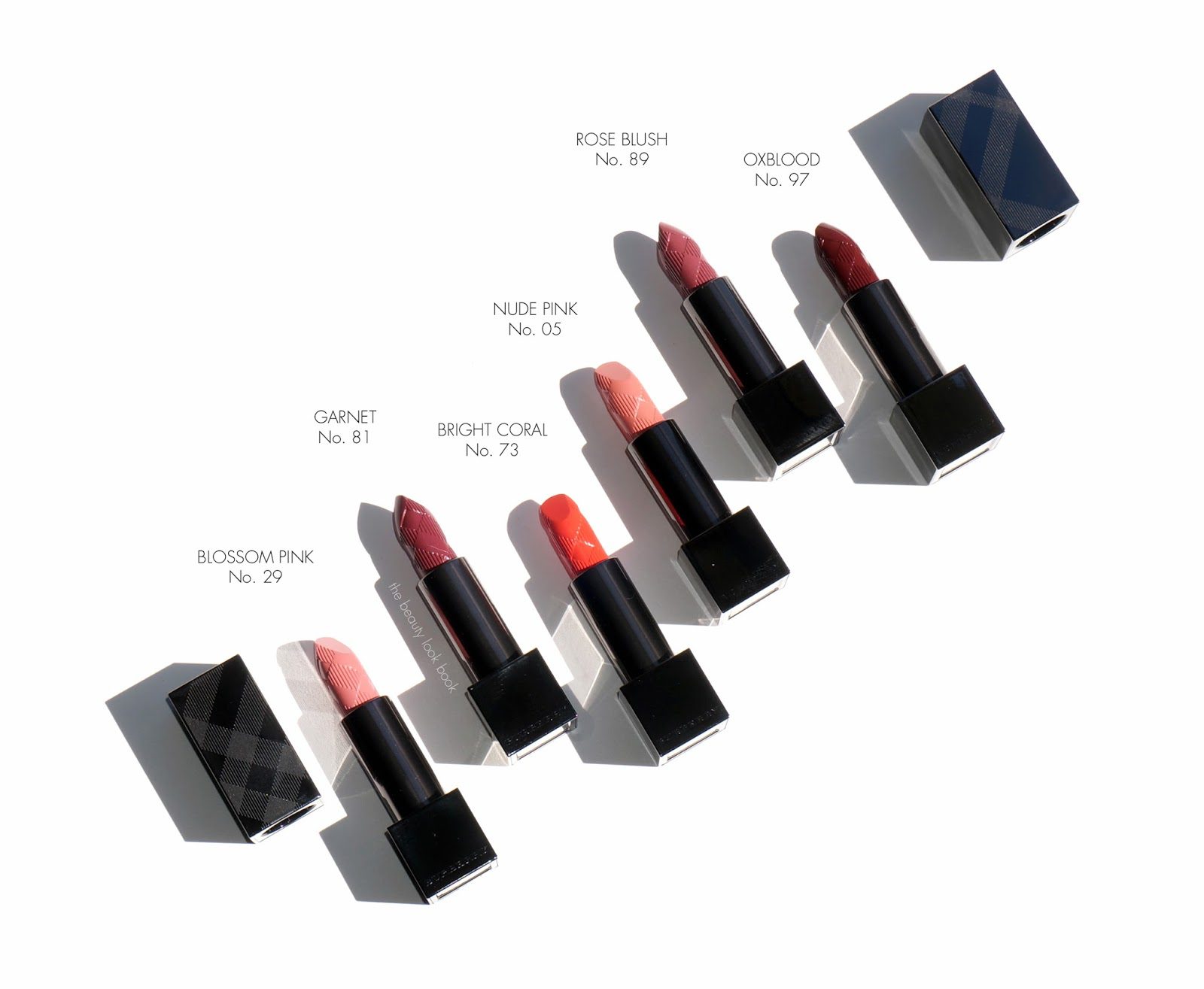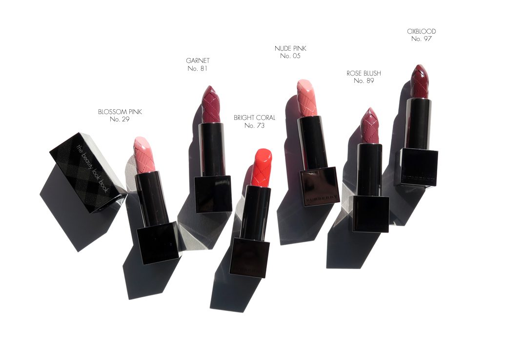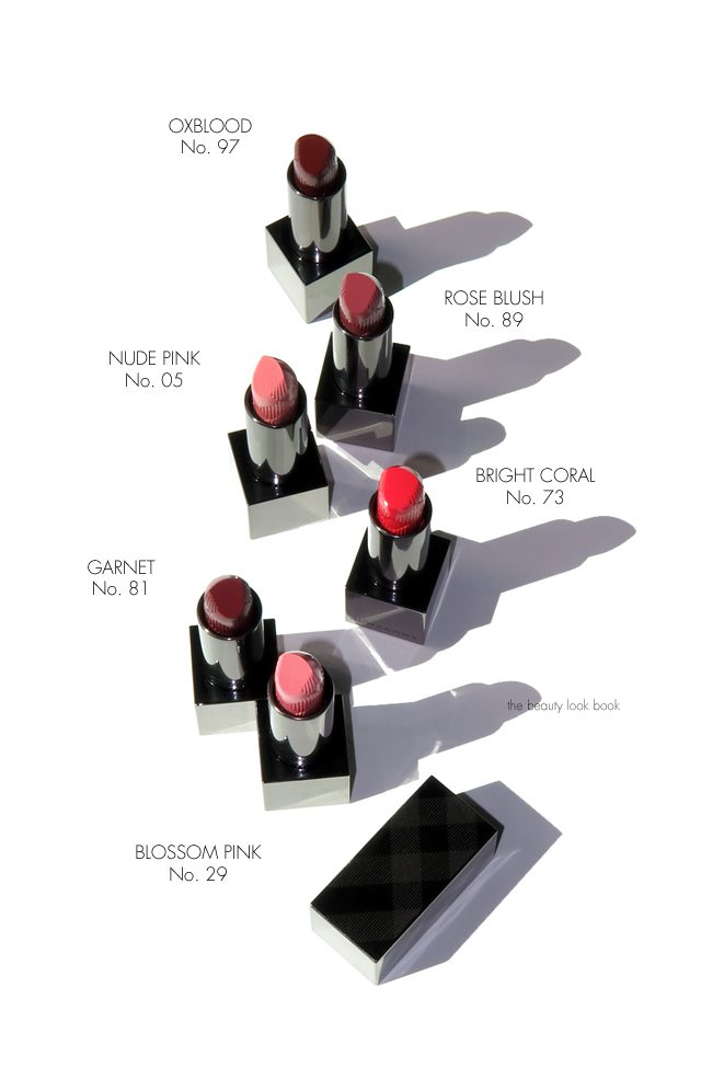 One last shot below of the new Burberry Kisses, left to right is Nude Pink, Oxblood, Bright Cora, Nude Blush, Blossom Pink and Garnet