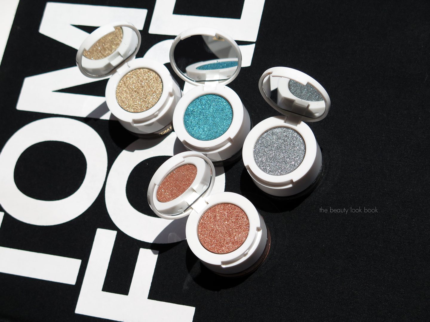 There are four colors which are some of the prettiest duos I’ve seen. The glittery powders are semi-sheer in terms of color but there is still a lot of pigment. When layered over the cream shadows they enhance the color of the creams and add dimension.