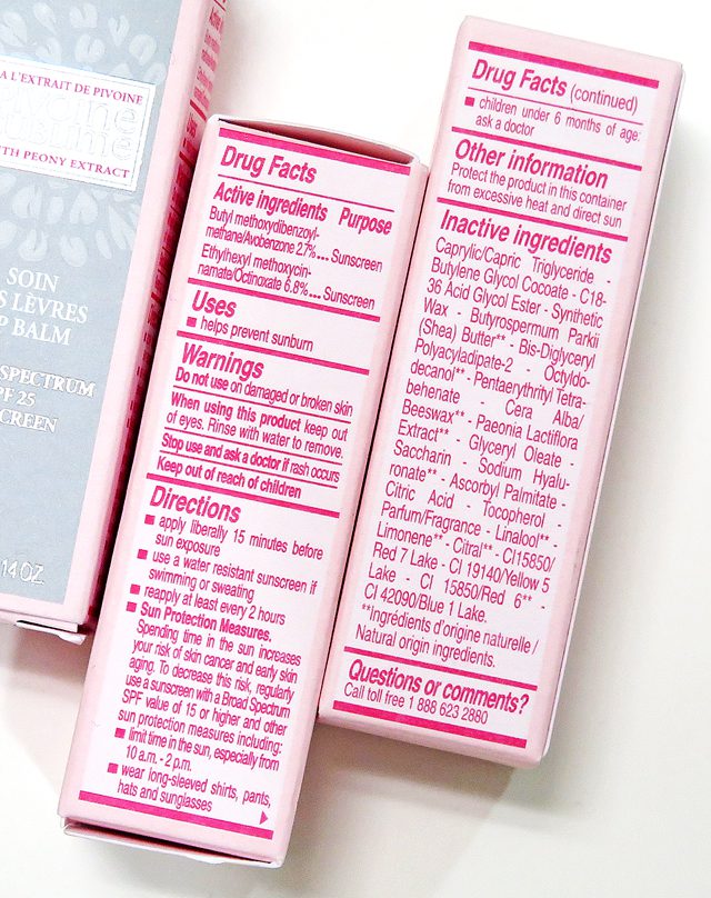 For spring, L’Occitane has launched a collection of skincare, body and lip products in a Peony Collection called Pivoine Sublime or “Sublime Peony.” I was able to get a preview of the entire line at an event last month and am so impressed with the way the creams, serums and mists hydrate the skin in a gentle way. I’m still in the midst of testing out the skincare, but today I have a review prepared for the Peony Tinted Lip Balms ($16 each for 4 g / 0.14 oz) all come with SPF 25 and are formulated with shea butter and L’Occitane’s unique peony extract. There are options of lip balm, three are tinted. These come in cute metal twist up tubes with a peony petal print on the outside.