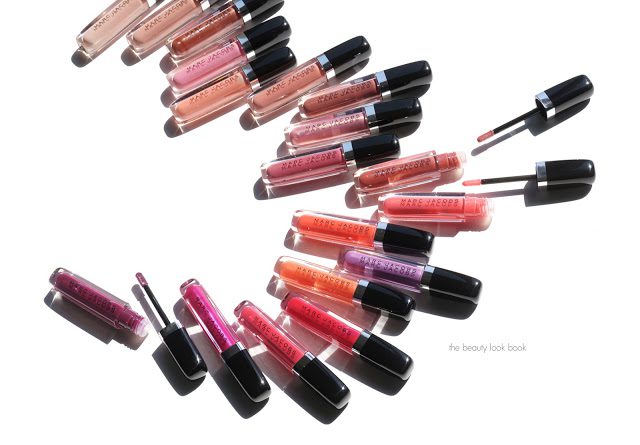 For summer Marc Jacobs Beauty has launched a new lip gloss formula called the Enamored Hi-Shine Lip Lacquer ($28 each for 5 ml/0.16 fl oz). There are 18 shades of high-shine lip gloss that come in a wide range of colors from soft nudes, feminine pinks, plums, corals and bolder reds. The textures range from jelly, to cream, to shimmer – all with a smooth lush cushiony gloss feel. In terms of pigment, most of the colors offer sheer to medium coverage. Some you can wear alone while others are best used for high shine or to layer over lipstick. There is a subtle sweet minty scent to the glosses which have a cooling (but not tingling) feel on the lips. The Enamored Lip Lacquers are infused with apricot and passionfruit and feel ultra hydrating and smooth once applied. I’ve teamed up with Marc Jacobs Beauty to share all 18 colors with you today.