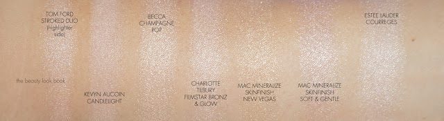 I swatched the Becca Champagne Pop highlighter next to the Charlotte Tilbury Norman Parkinson Highlighter, Hourglass Luminous Light and NARS Tribulation Blush in this post here.