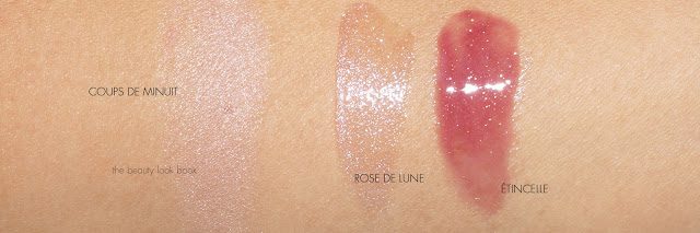 The two Limited-Edition Glossimers in Rose de Lune and Ètincelle are both very sheer colors loaded with lots of sparkle. They are almost like micro-glitters in the tube but on the lips the shimmer is very subtle (at least on me). Since they are sheer they will give your lips a very subtle tint with lots of shine if you wear these alone. I have played with Rose de Lune on top of lipsticks and it’s a very pretty layering color. I suspect Ètincelle will look stunning layered over plums and mauves but I haven’t had a chance to layer it yet. So far I’ve worn it alone and even though it’s sheer it gives my lips a healthy soft berry tint – perfect for my neutral-makeup-loving self.