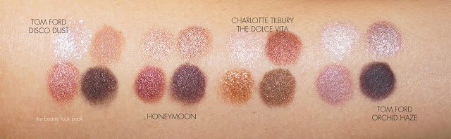 Swatch comparisons to Charlotte Tilbury The Dolce Vita (another warm quad I have) and Tom Ford Orchid Haze. In terms of neutral quads, Orchid Haze is one of my favorite everyday neutral palettes from Tom Ford.