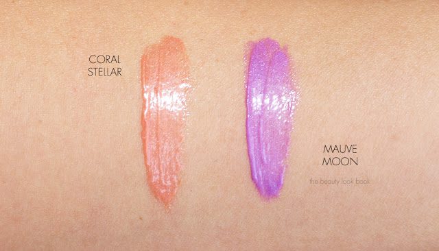 Coral Stellar is a lush peachy shimmer. It has a deeper brighter orange base which makes it look bright, but it has a pretty soft shimmer to it which lightens the color and gives the lips the most luscious soft peachy glow. It is on the sheer side but it’s not so sheer that it’s invisible on my pigmented lips. If you love the color and aren’t focused so much on the treatment aspect, I’ve swatched a few gloss colors that I think have a similar effect.