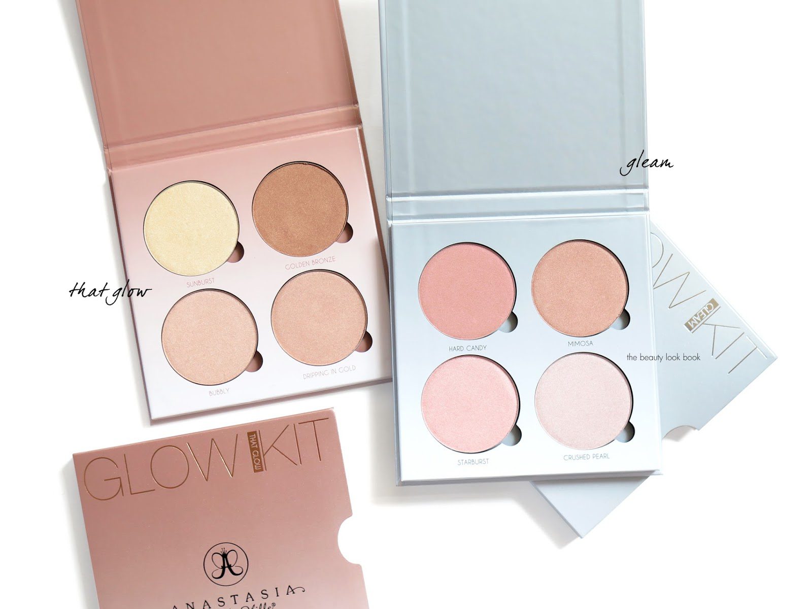 For me these get a thumbs up. If I had to pick just one it would be a tough call for me. Gleam has colors I find more unique compared to other highlighters I own, but That Glow is more natural on my skintone and I prefer the warmer tones for my complexion.