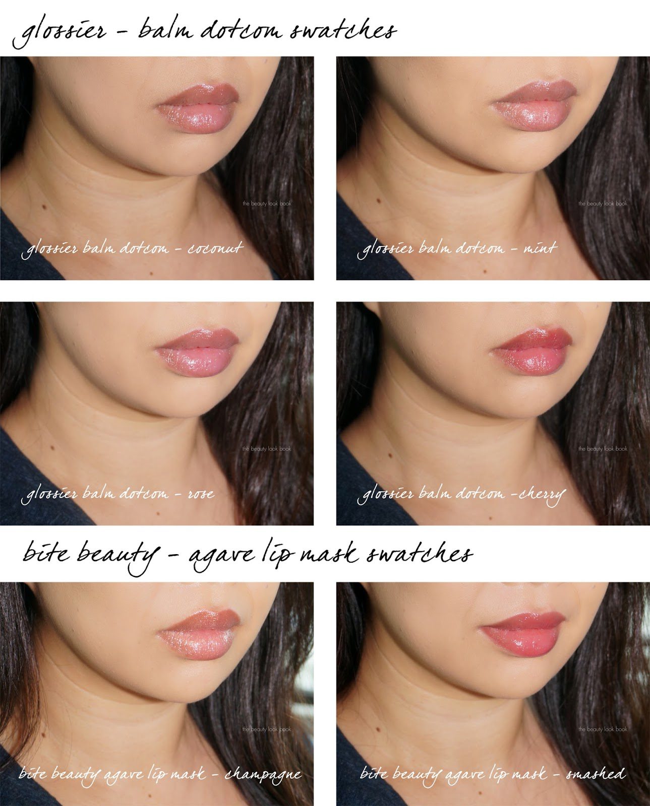 If you’re one who doesn’t like reapplying product or if you want something more intense, I do think the Bite Beauty Agave Lip Masks are better – but the ingredients, concept, packaging and purpose is completely different. The Bite Beauty Agave Lip Masks are designed to be a leave-on lip mask and they don’t have any petroleum (while the Glossier products do). They are also more than two times the price (but I don’t mind). Below a look at Champagne and Smashed reswatched on the lips.