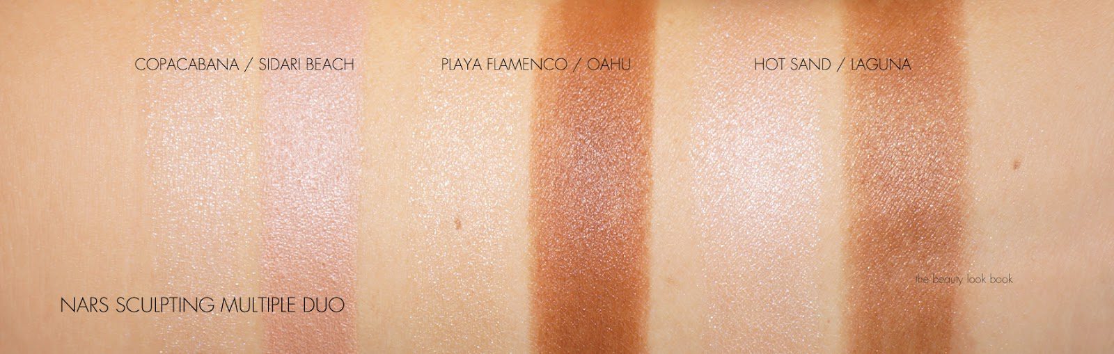 Next up are the NARS Sculpting Multiple Duos which are currently Sephora exclusives. I had very high hopes for these as I’m a huge fan of the multiple sticks and they did not disappoint. The texture of the highlighter multiples are stiffer than I normally see in multiples so they do not swatch well on the arms. They do swipe a 100x better on the face or eyes. I found these to be on the more subtle side which I think is due to the slightly stiffer/harder texture. The bronze/contour sides are amazing though. As a lover of lighter contour shades I love the Copacabana and Sidari Beach duo – it’s a peachy pinky color on my skintone which makes for a less traditional brown contour.