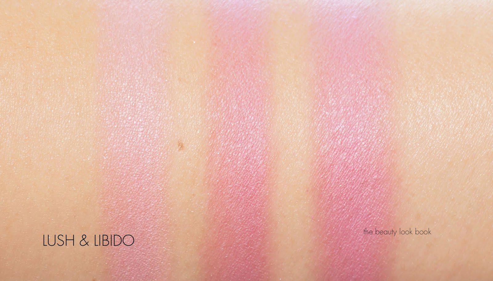 - Hourglass Ambient Lighting Blush in Radiant Magenta (reviewed here) is warmer than MJB Lush and Libido (I have a very slight preference for the Hourglass one just because I like warmer colors, but both are very pretty)