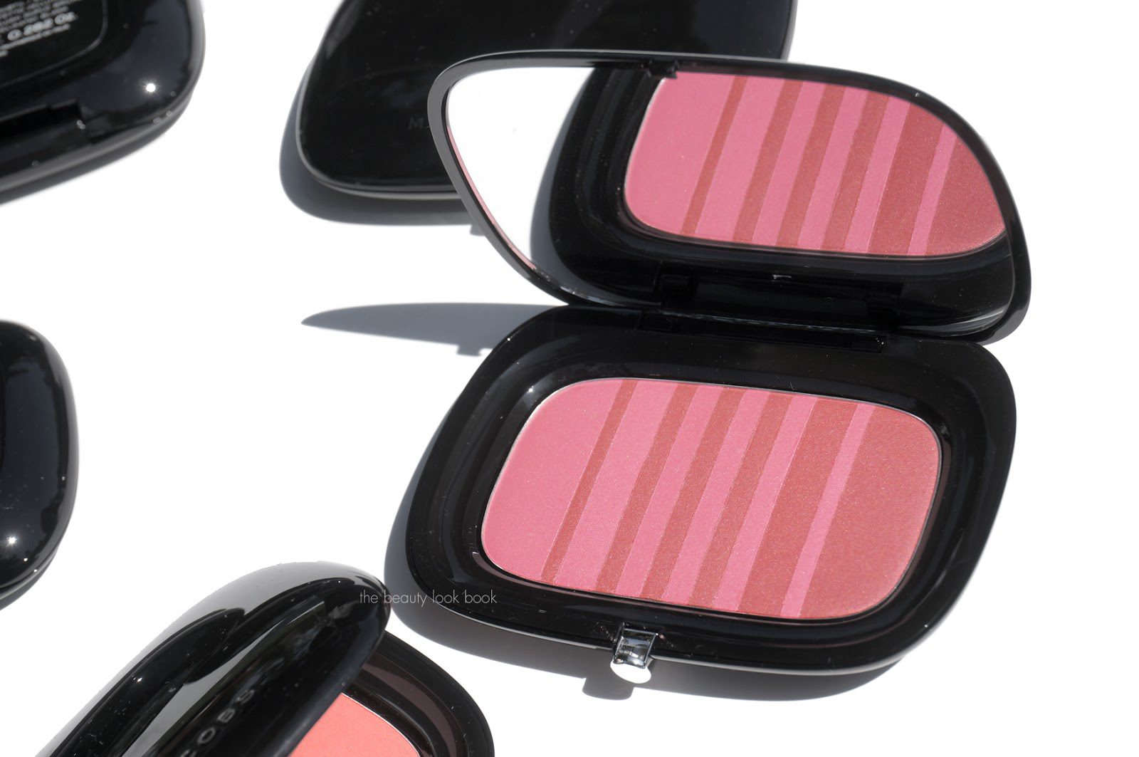 The Marc Jacobs Beauty Air Blush has a similar concept to that of the Hourglass Ambient Lighting Blushes (reviewed here) in the sense that both contain two colors in each compact, one being a lighter softer shade and the other being a deeper or brighter blush color. The Hourglass blushes all have a highlighter color swirled in so they have a more luminous shimmer on the skin while the Marc Jacobs Beauty ones have a more satiny finish with less shimmer.