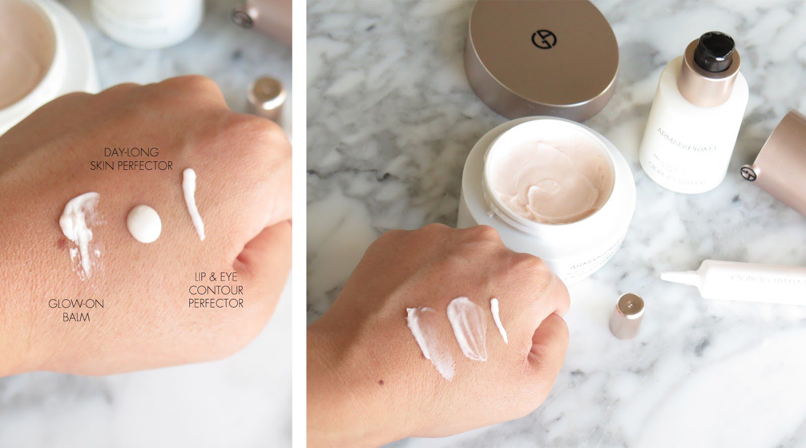 Up first are three items from the Armani Prima Skincare line. This line was designed to keep the glow in your morning makeup look fresh and stay put all day long and the three items that first launched really do work. They smooth the skin, give it a very natural glow without the greasy feel and work well with my makeup (all brands including NARS, MAC, Make Up For Ever, Hourglass).