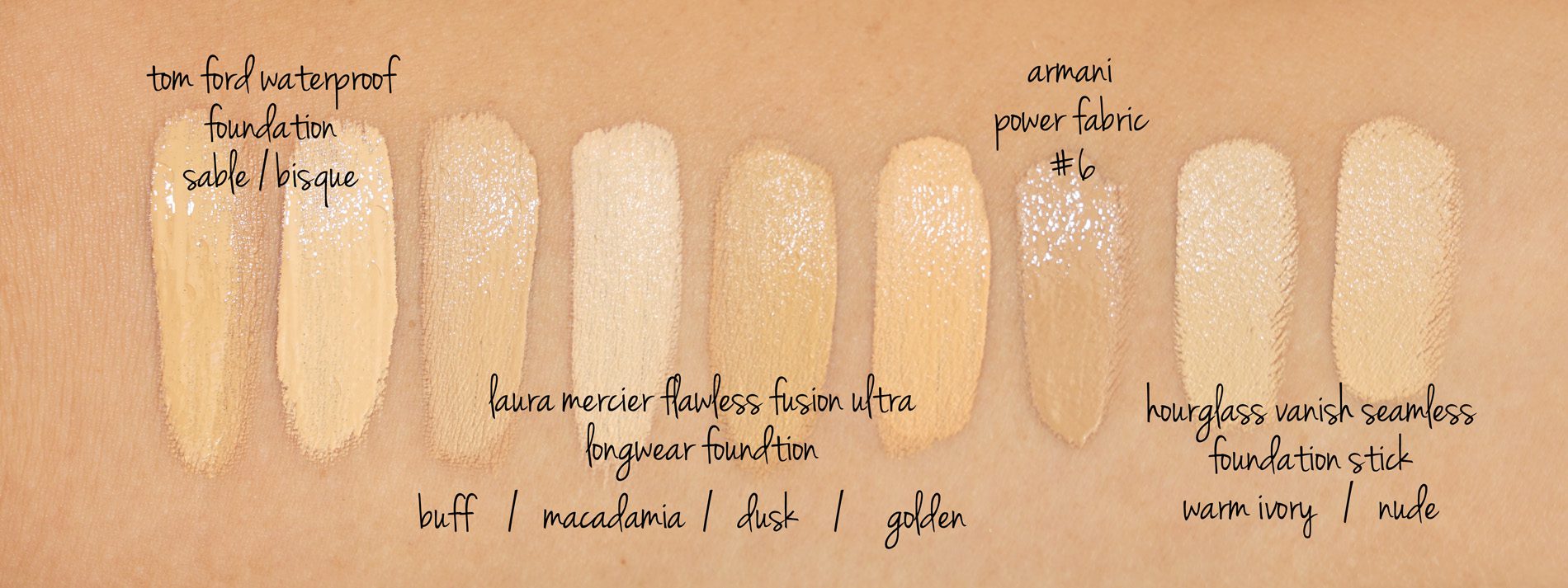 - Tom Ford Waterproof Foundation and Concealer is hands down my most-worn foundation base. It offers medium to full buildable coverage and I love everything about it. For me Tom Ford Beauty has the best foundation shades to match my skin tone. It blends easily and covers my skin exactly how I like it without getting cakey. It lasts an impressive amount of time without sliding, creasing or budging. Review + swatches here.