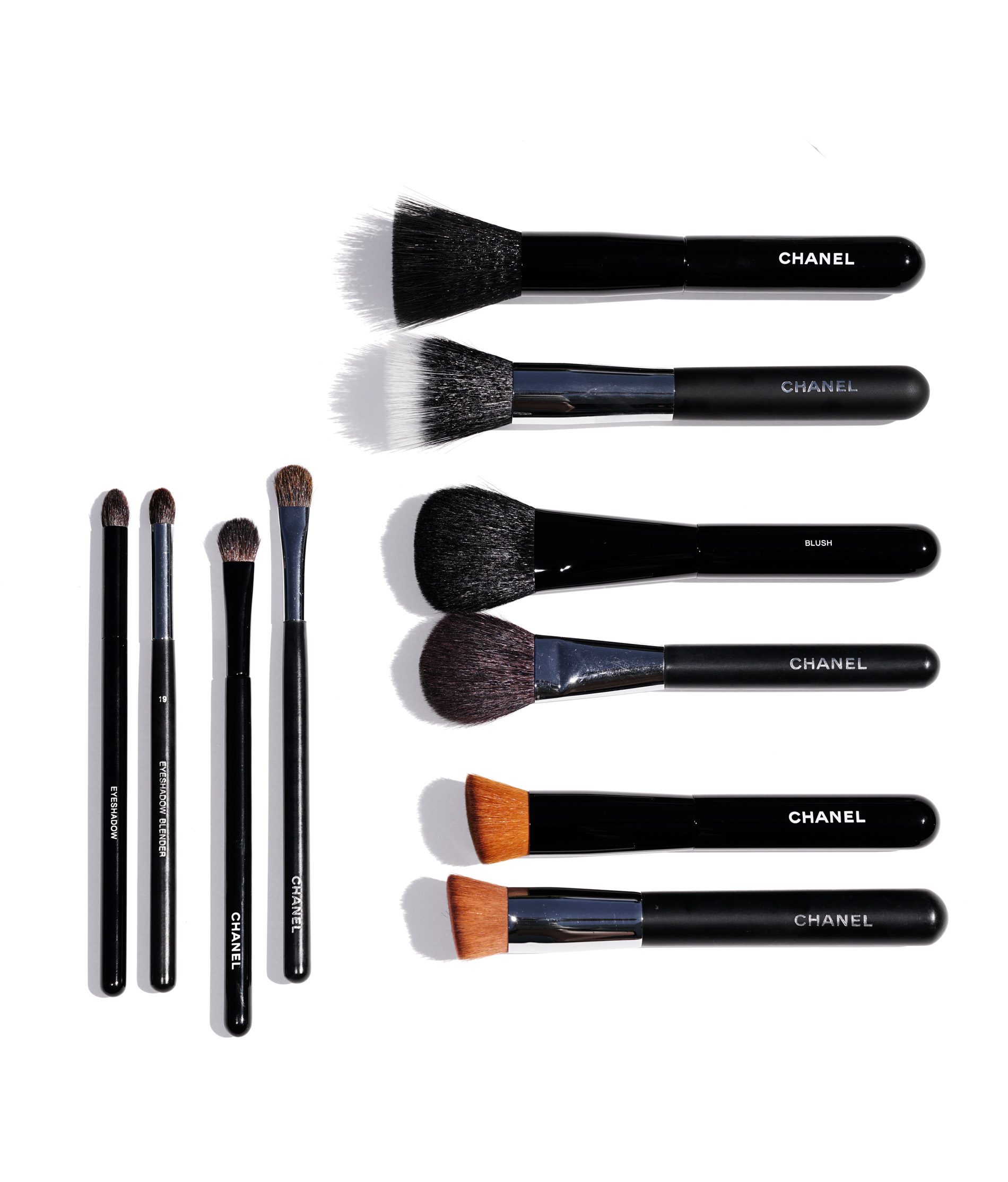 Shown above from left to right. Quick note at the moment on the Chanel.com website a couple of these are switched in the image: the Eyeshadow-Blending Brush and Rounded Eyeshadow Brush images are switched for the names. I emailed them and they said they fixed it but based on the product names they have not. I would go by the brush name which I confirmed by checking the box they came in.