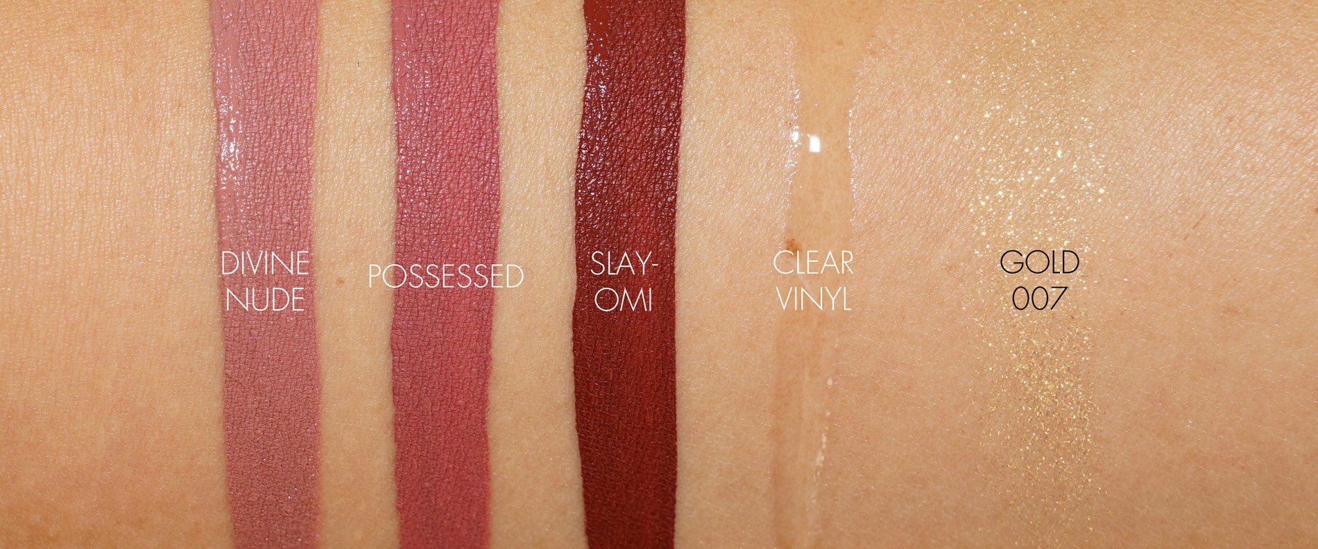 The only color I felt was too dark was Slay-OMI but it’s really nice for a deep lip. I didn’t try the gold glitter except to swatch. It’s a yellow gold and as I don’t like to wear yellow or glitter I don’t see how I’ll get any use out of this (it’s being regifted to one of my friends).