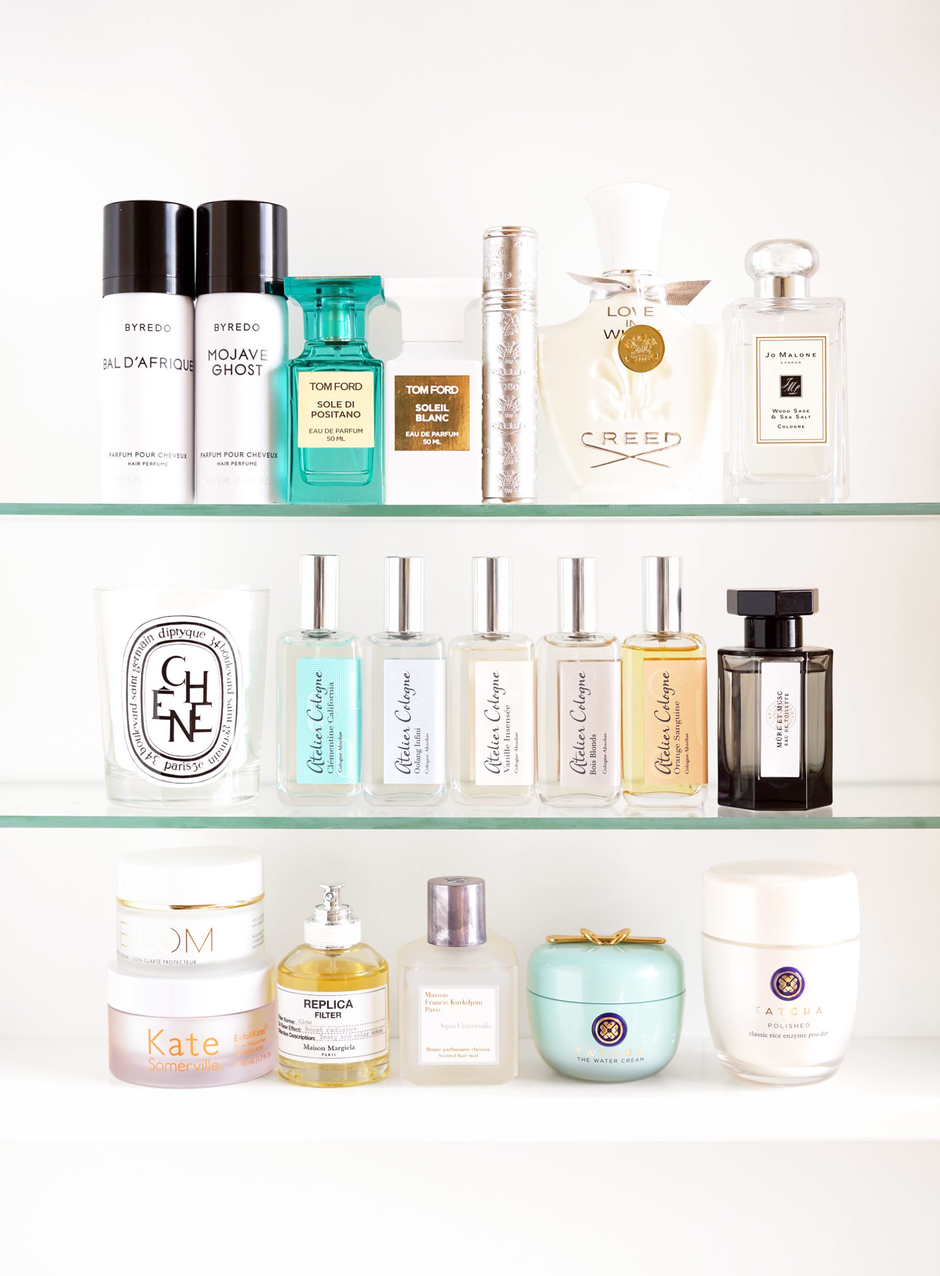 Doing a little his and hers shelfie today rounding up our fragrance favorites of the year. Looking back on my archives I haven’t done a scent roundup since early spring but quite a few have been on repeat for months. I used up several bottles year including Tom Ford Sole di Positano, Soleil Blanc, Creed Virgin Island Water and the Replica Glow Filter. Andrew has gone through several bottles of Creed Aventus and Chanel Bleu de Chanel. More details on our favorites below.