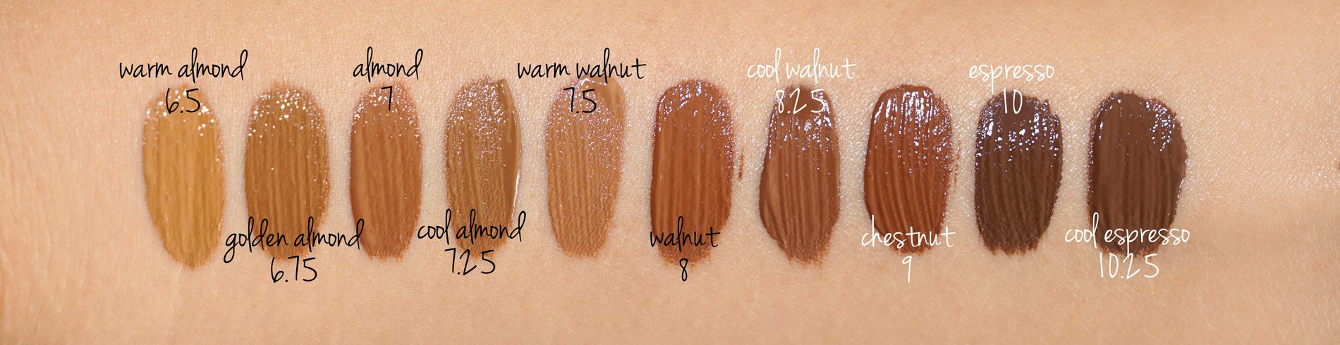 Warm Almond 6.5, Golden Almond 6.75, Almond 7, Cool Almond 7.25, Warm Walnut 7.5, Walnut 8, Cool Walnut 8.25, Chestnut 9, Espresso 10, Cool Espresso 10.25