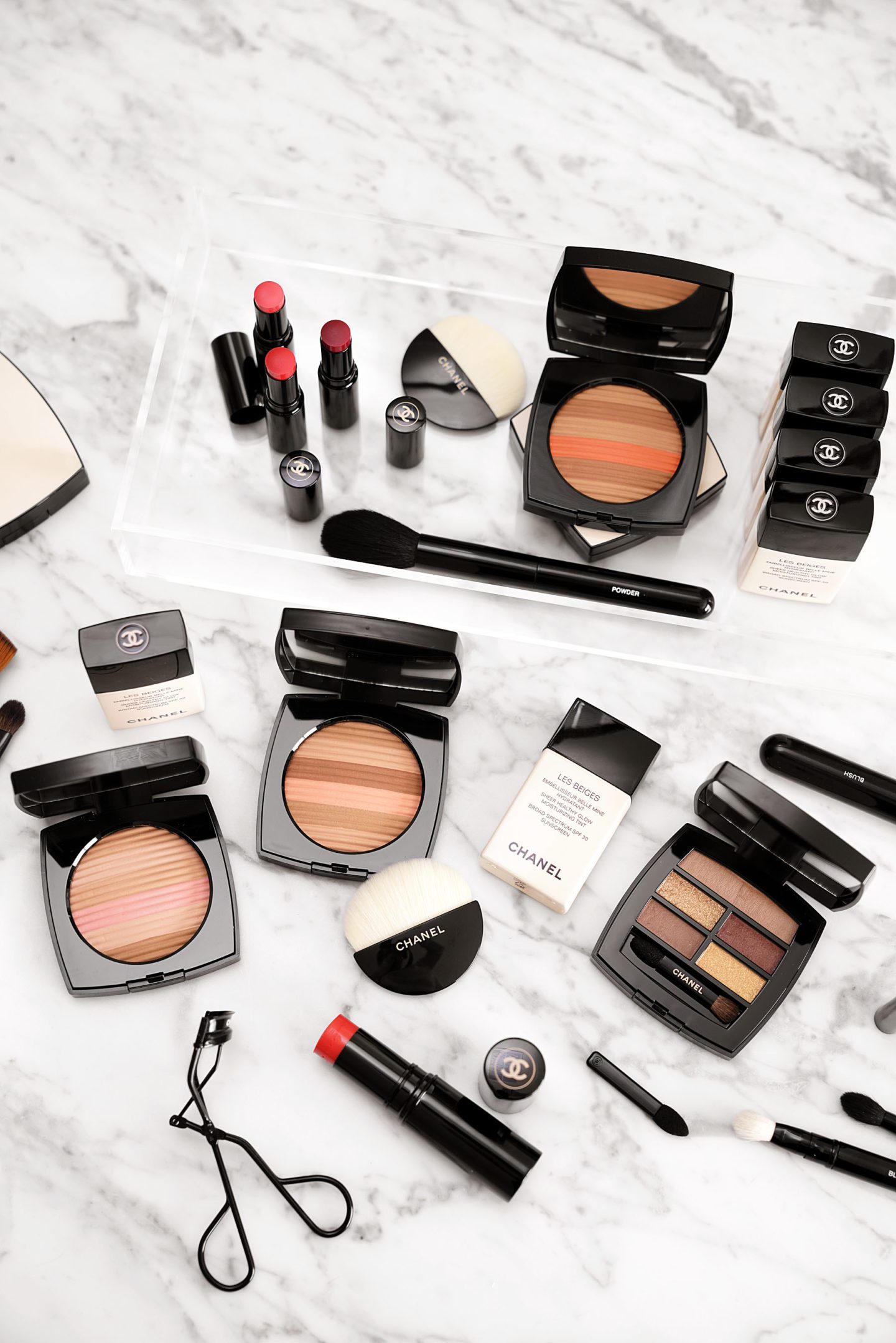The Chanel Les Beiges Collection 2018 has finally arrived and I’m thrilled to be able to give you a look at everything from this year’s launch. This is one collection I look forward to each year for natural glowing makeup. I’ve used the original Les Beiges Powders in No 20 and 30 for as long as I can remember! They usually launch some of the prettiest bronzers and this year they have Luminous Multi-Colour Powders with stripes of different colors mixed in. There are also new shades for eyes and lips. Covered today: