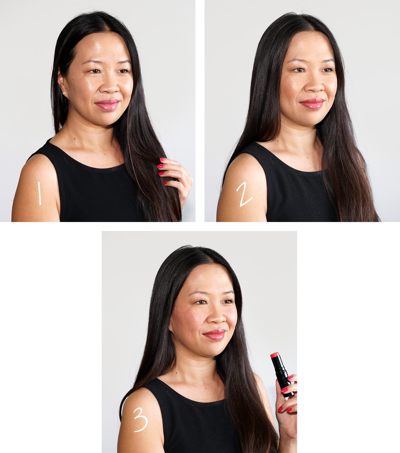 I like the look where you’re wearing the medium lip balm. It appears very natural and fresh and you look beautiful, as always. I purchased the deep lip balm and three new nail polishes.