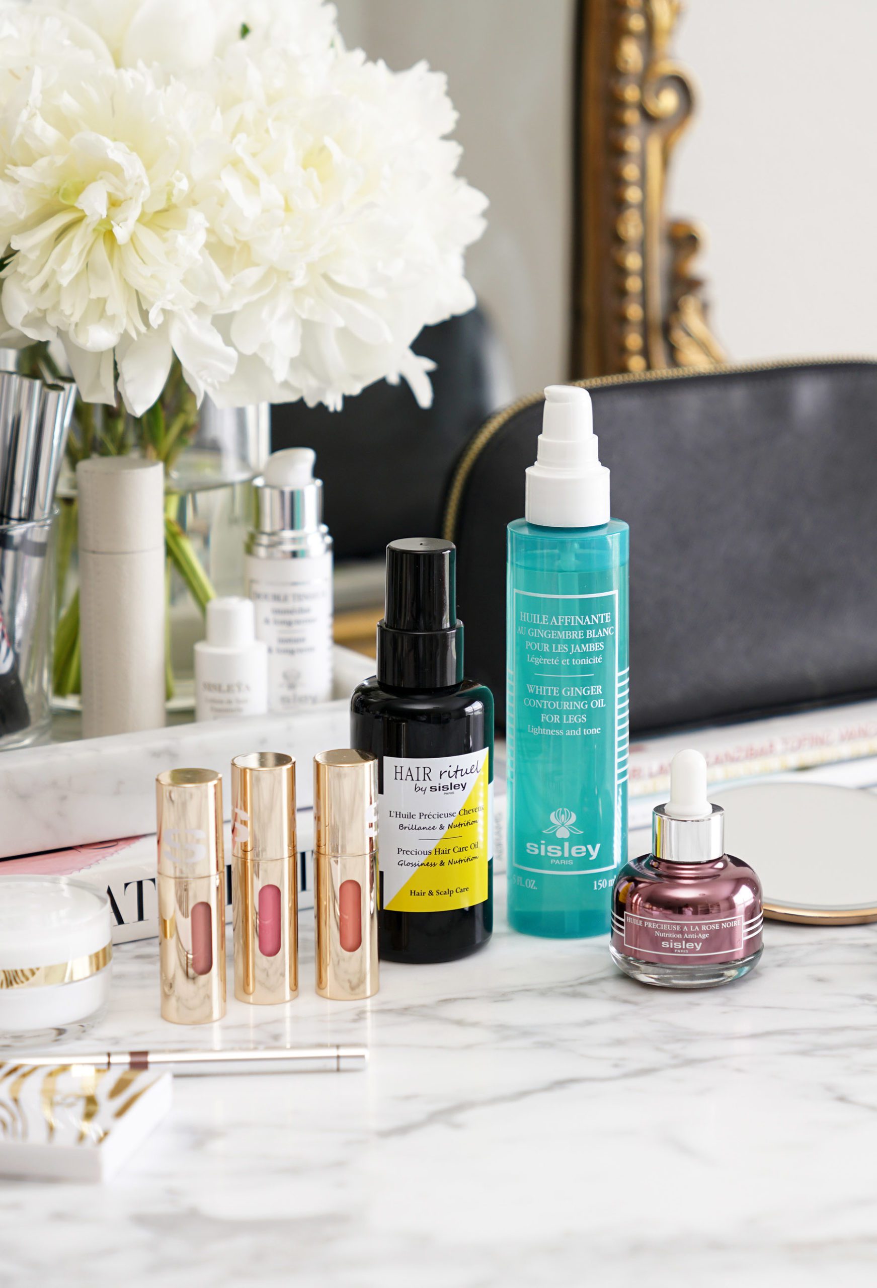 I’m excited today to have a roundup of some of the best beauty oils I’ve ever tried. As I age I’ve become more and more interested in oils for the face and body to help restore moisture and elasticity to the skin. So many of you have raved about the Sisley Black Rose Precious Face Oil as the only face oil some of you will use. I test this in a trial size last year from one of the Beauty Subscription Boxes and was instantly hooked. I’ve since hoarded every mini I could find from various GWPs but now am thrilled to be the happy owner of a full-sized bottle. This now completes my Sisley oil collection for hair, lips (launched earlier this month), legs and face so I thought it would be perfect to do a roundup – especially since so many of you have been really curious about the Hair Rituel Precious Hair Care Oil! In addition the Sisley team has offered to do a really fun giveaway. Details are at the bottom of the post.